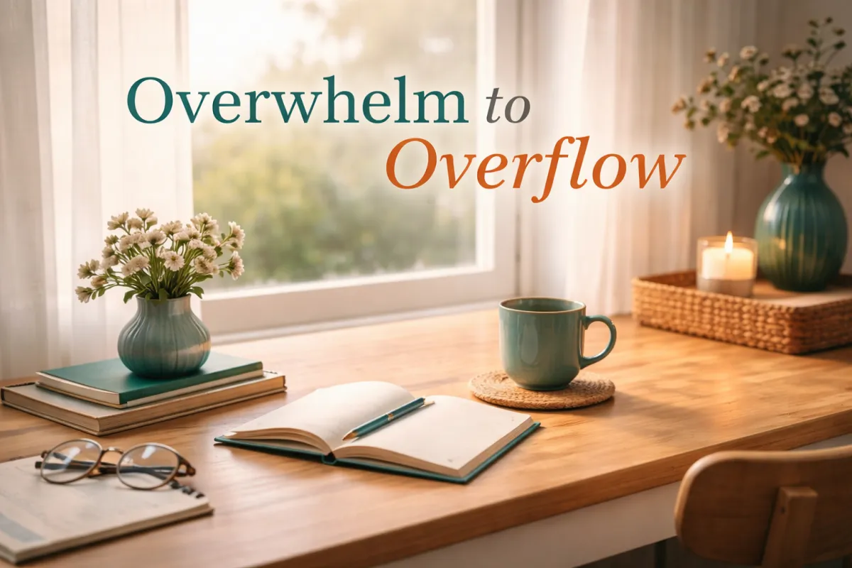 From Overwhelm to Overflow: The Inner Story Shift™ is a 6-week guided group experience designed to help you calm mental noise, steady emotional patterns, and begin living from an inner story that works for you — not against you.